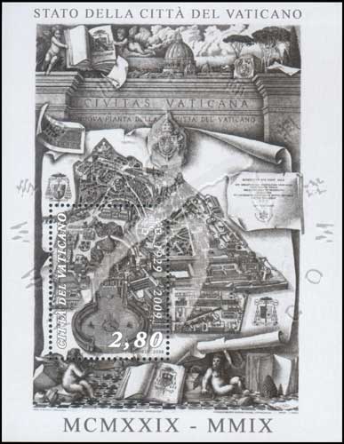 梵蒂冈城国创建80周年,城市俯瞰示意图等小型张