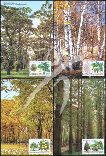 朝鲜中央植物园建成50周年,梓树、白桦、姬核桃及水杉摄影极限片4全