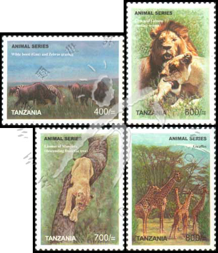 动物,牛羚、斑马、公狮子、母狮子及长颈鹿4全