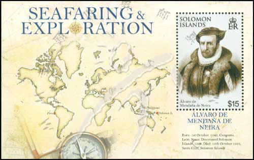 航海探险,航海家阿尔瓦罗·德·孟丹努厄·德·雷瓦拿、地图及指南针小型张