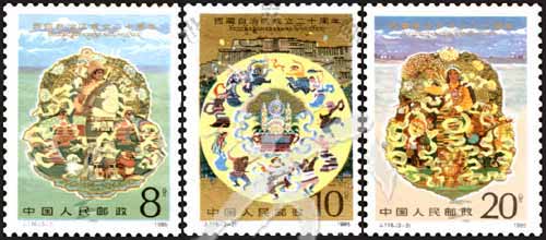 (J116)西藏自治区成立二十周年1枚(3种面值)