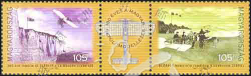 航空历史,飞行家路易斯·布莱里奥特首次飞越英吉利海峡百年及试飞场景2联(带1枚过桥票为飞机模型示意图)
