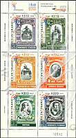 智利独立200周年,首任总统曼努埃尔·布兰科·恩卡拉达肖像及早期邮票票中票等小全张(6票)