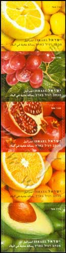 水果,葡萄、柠檬、西洋梨、橙子及石榴不干胶自贴票5联