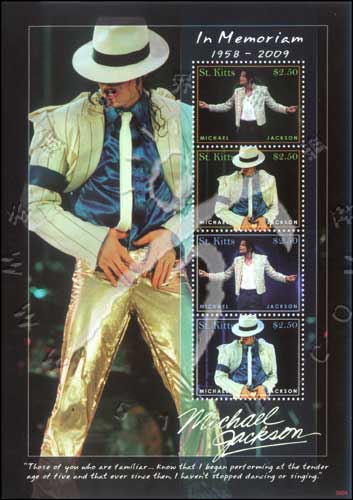 流行音乐之王歌星迈克尔·杰克逊逝世系列一,演出照片小版张(2套共4票)