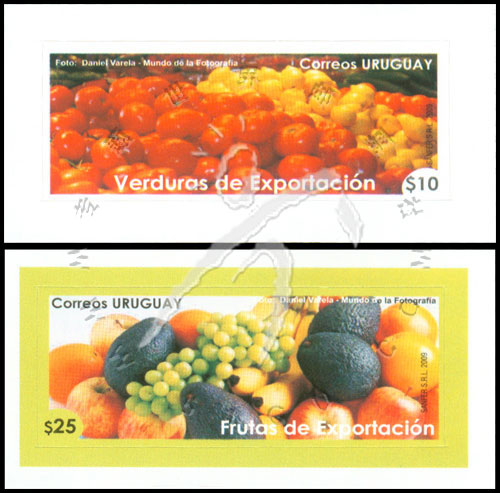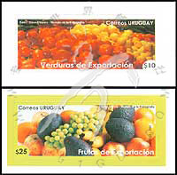 邮票介绍:出口水果和蔬菜,西红柿、苹果、葡萄及香蕉等不干胶自贴票2全