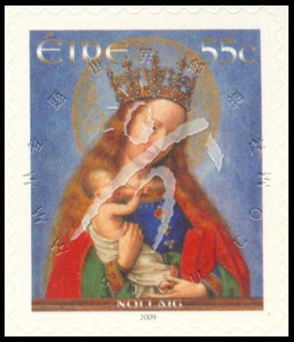 圣诞节,绘画《圣母子》不干胶自贴票1全