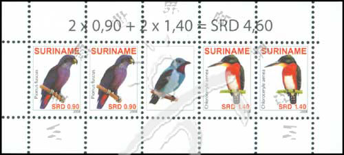 鸟类,暗色鹦鹉及侏绿鱼狗小全张(4票+1枚附票)