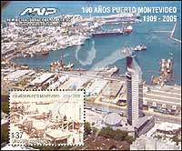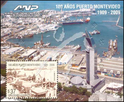 乌拉圭蒙得维的亚港建成百年,港口老照片及俯瞰图小型张