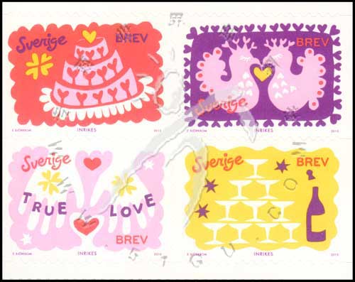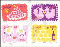 祝福邮票,蛋糕、双手及香槟塔等不干胶自贴票4联