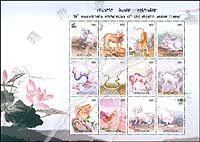 中国生肖邮票发行30周年,十二生肖小版张(12票)