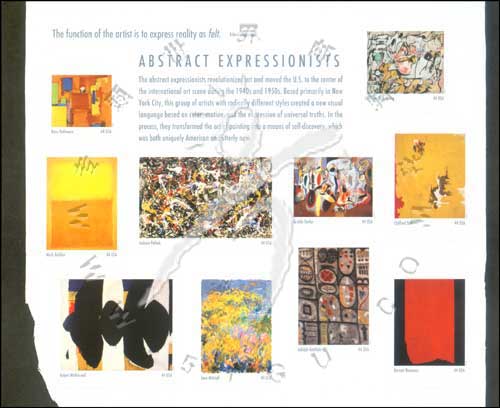 抽象表现主义绘画,《金色的墙》、《橙色和黄色》、《西班牙共和国的挽歌》、《大峡谷》及《阿基里斯》等不干胶自贴小版张(10票)