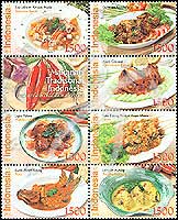 传统美食,西苏拉威西省、明古鲁省、东加里曼丹省、北马鲁古省、占碑省、廖内省及邦加勿里洞省地方美食7联(带1枚附票)