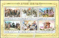 朝鲜解放65周年,朝鲜战争时期绘画小版张(5票+1枚附票)