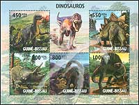恐龙,禽龙、剑龙、三角龙、雷龙及棘龙小版张(5票)