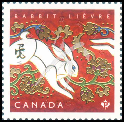 兔年生肖,绘画兔凹凸压印镀金票1全