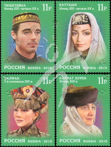 民族头饰,鞑靼民族的少女、已婚女性、老年妇女和男子的头饰及帽子4全