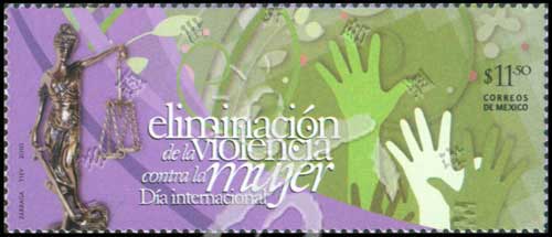 消除对妇女的暴力行为国际日,高举的手及象征女性权利的铜像1全