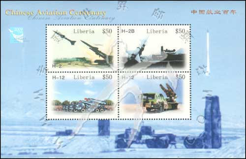 中国航空百年,徽志及各式空军武器小全张(4票)