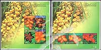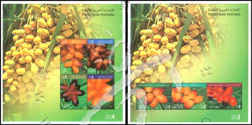 水果,阿联酋各品种葡萄2枚小全张(一枚3票,一枚4票)