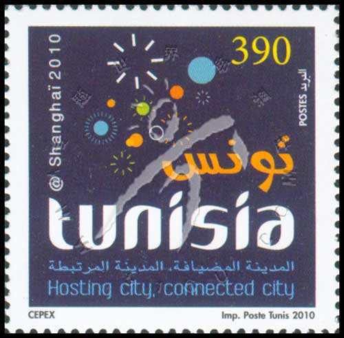 上海2010世博会,法语“突尼斯”、阿拉伯语“2010上海世博会”及英语“主办城市,连接城市”等1全