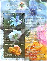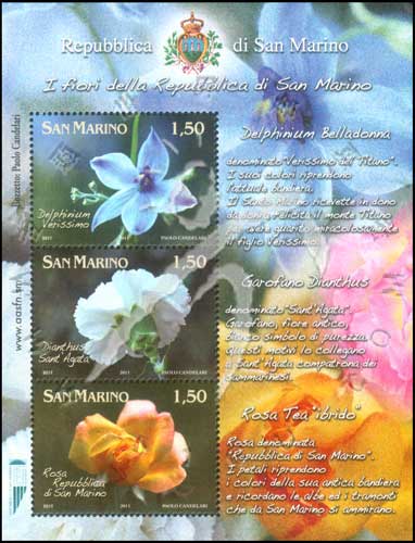 花卉,翠雀花、康乃馨及玫瑰小全张(3票)