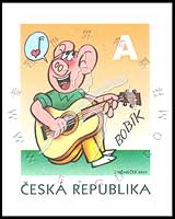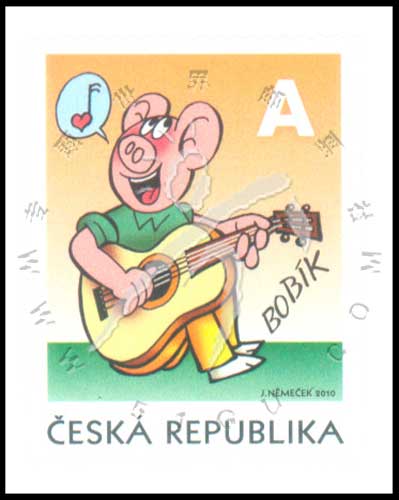 卡通小丑,弹吉他的小猪伯比克不干胶自贴票1全