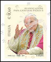罗马教皇约翰·保罗二世宣福礼,肖像不干胶自贴票1全