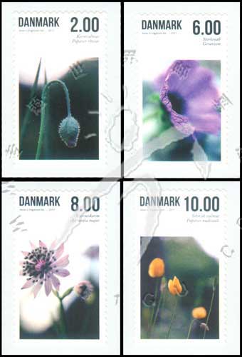 夏日花卉,虞美人、天竺葵、大星芹及山罂粟不干胶自贴票4全