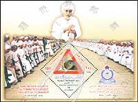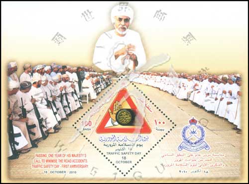 交通安全日,交通安全标志及着白衣的人们等菱形票小型张