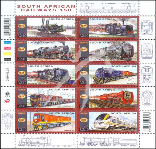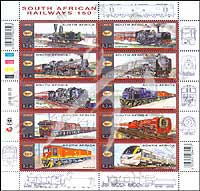 南非铁路事业开展150周年,早期及现在的火车机车小版张(10票)