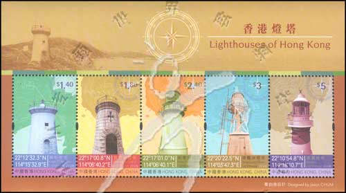 灯塔,鹤咀灯塔、旧青洲灯塔、新青洲灯塔、灯笼洲灯塔及横澜灯塔小全张(5票)