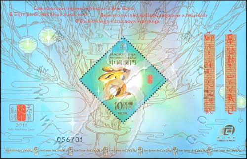 兔年生肖,兔形金饰小型张
