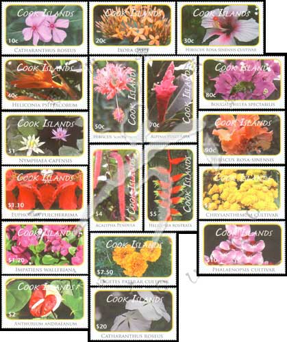 花卉,长春花、洋红仙丹、扶桑、蝎尾蕉、吊灯扶桑、红花月桃、三角梅、埃及蓝睡莲、一品红、凤仙花、红掌、菊花及红尾铁苋等高值票18全
