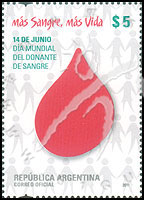 世界献血日,血滴及人形剪影釉质涂层票1全