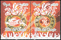 兔年生肖,绘画兔、汉字兔及12生肖罗盘2联