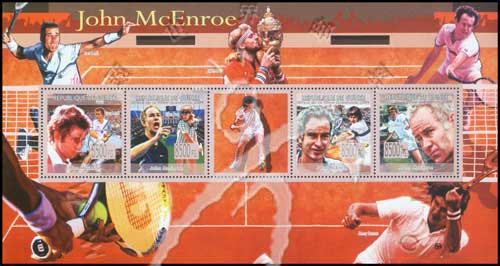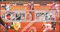 体育,网球运动员约翰·麦肯罗、蓝道、比约恩·博格及吉米·康纳斯赛场英姿小版张(4票+1枚附票)