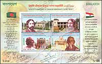 印度诗人泰戈尔诞生150周年,肖像及建筑小全张(4票)