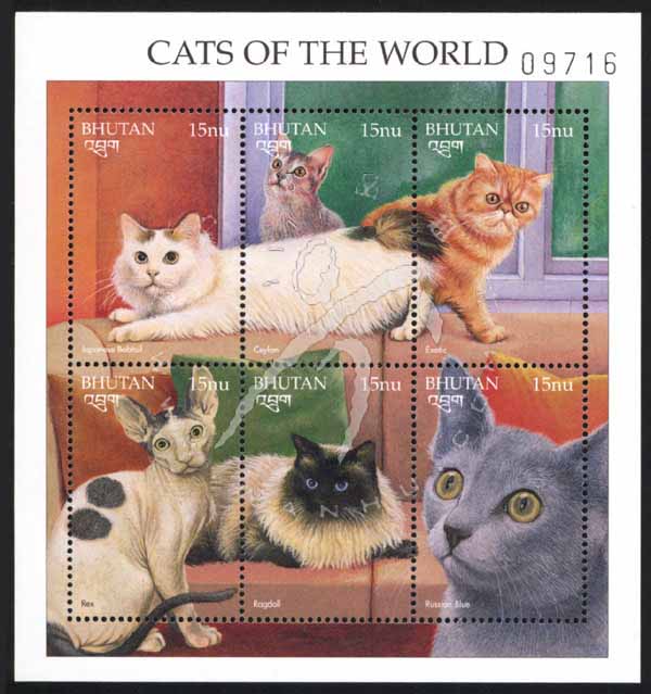 观赏猫,日本短尾猫、斯里兰卡猫、布偶猫及俄罗斯蓝猫等小版张(6票)