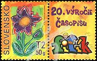 斯洛伐克Fifik儿童运动会杂志创刊20周年,绘画花朵带附票1全
