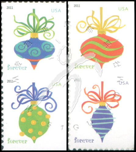圣诞节,圣诞树装饰球不干胶自贴票4全