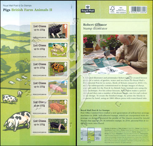 自动柜员机邮票:猪,巴克夏猪、格洛斯特郡花猪、牛津桑迪猪、威尔士猪、塔姆沃思猪及不列颠白肩猪不干胶自贴邮票卡(6票)