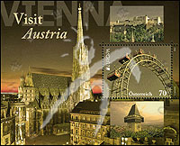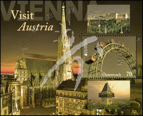 欧罗巴—观光年,奥地利著名建筑及维也纳普拉特游乐场的大转轮小型张(我社已售缺)