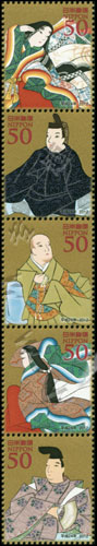 2012年书信日,和歌名家殷富门院大辅、藤原敏行朝臣、后恵法师、皇嘉门院別当及曽祢好忠5联