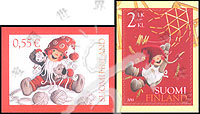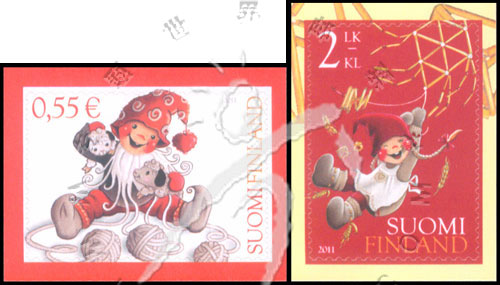 圣诞节,玩线球的男精灵及荡秋千的女精灵不干胶自贴票2全