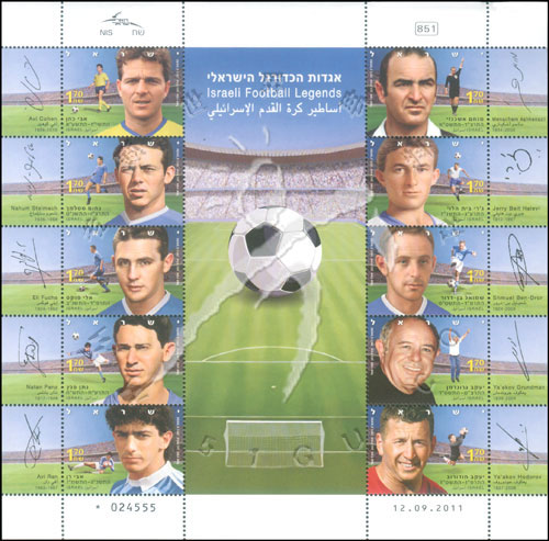以色列足球传奇,足球运动员阿维·科恩、斯特尔马茨及梅纳赫姆等及其签名小版张(10票)