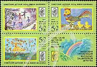 Sc#B148a 列宁儿童基金会,会徽及儿童画附捐票3联+1枚附票