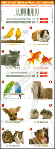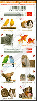 动物,鸟儿、猫咪、金鱼、鹦鹉、马、吉娃娃狗、仓鼠及兔子等不干胶自贴小版张(10票)