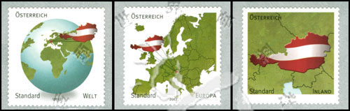 标准邮资邮票,国内、欧洲区及国际邮资不干胶自贴票3全