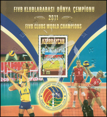 阿塞拜疆巴库世界排球联赛,获奖队友合影小型张